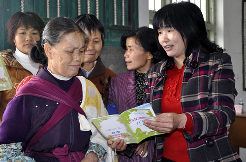 妇女干部进村入户宣传“两癌”防治知识