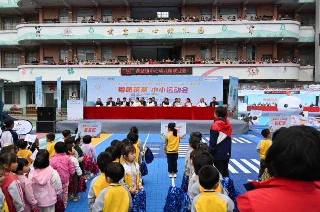 12月6日,2025年广东省“公益体彩 快乐操场”暨体育助力“百千万工程”乡镇幼儿园“粤萌筑基 小小运动会”在清远市阳山县黄坌镇中心幼儿园正式启动。600余名幼儿与家长欢聚一堂,在奥运冠军的见证与陪伴下,沉浸式体验传统与现代交融的体育乐趣。