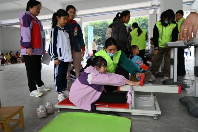 与此同时,青少年运动训练中心、青少年健康运动监测中心、未成年人心理健康辅导中心“三平台”展板前,也聚集了不少驻足了解的家长。工作人员一边结合展板内容,讲解科学育儿、幼儿运动安全等知识,一边为有需求的幼儿现场开展身高、体重测量,以及平衡能力、反应速度等基础体质监测,将健康运动理念实实在在送到乡村一线,让家长们对“如何陪伴孩子科学运动”有了更清晰的认识。